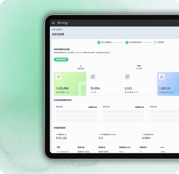 售電平台試算模組 - 綠電採購顧問